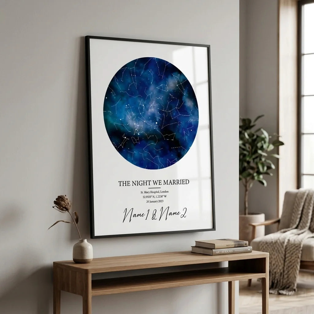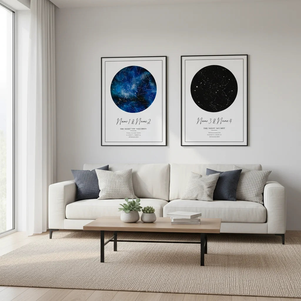 Turn your most cherished memories into stunning, personalized star map art, effortlessly.